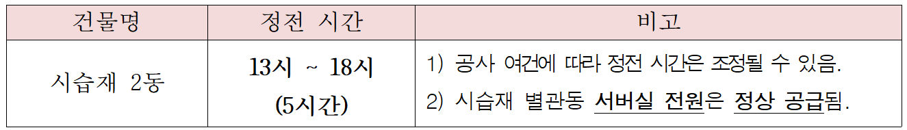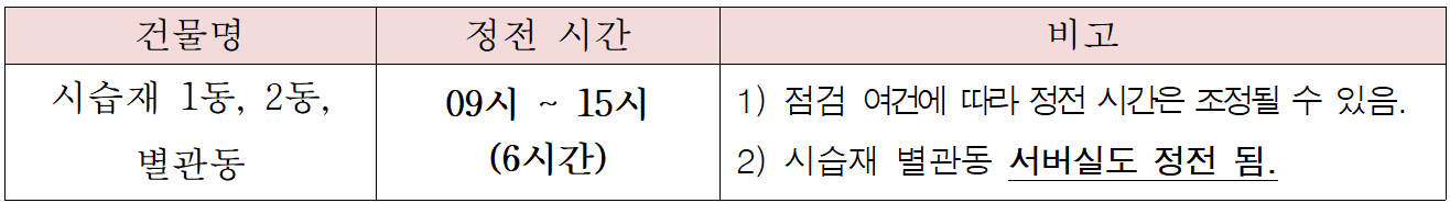 다. 정전 시에는 근무 및 행사가 어려우니 양해하여 주시기 바랍니다.  끝.