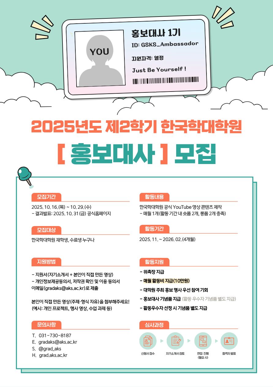 한국학대학원 홍보대사(GSKS Ambassador) 모집