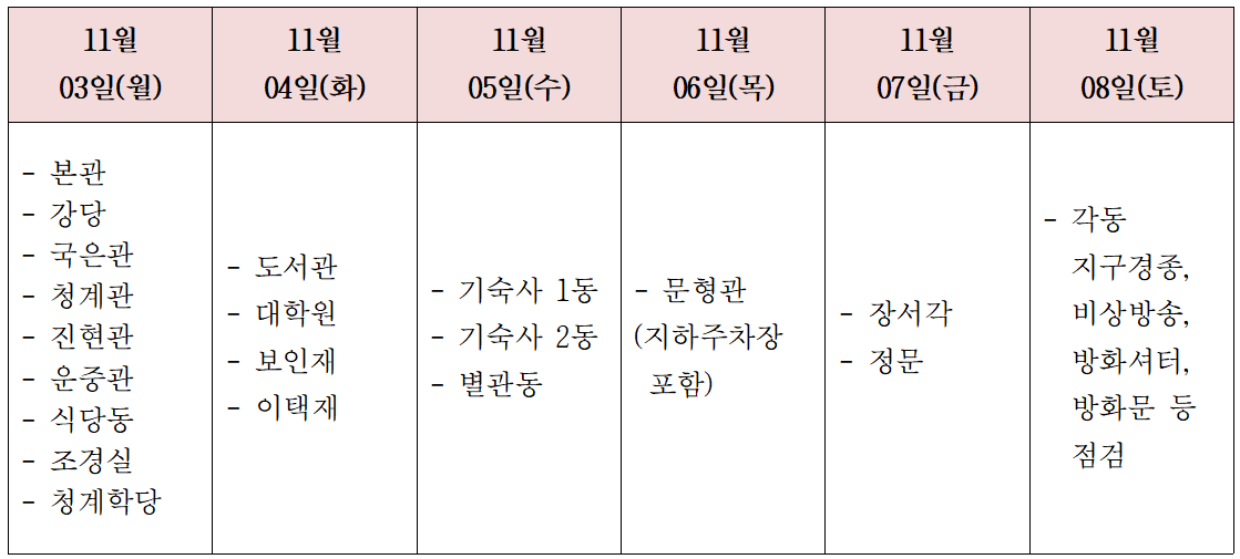 ※ 점검 상황에 따라 일정은 변경될 수 있으며, 점검 중 비상방송 및 사이렌이 작동될 수 있습니다.